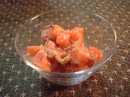 豆腐はみずきりして手でくずします。
